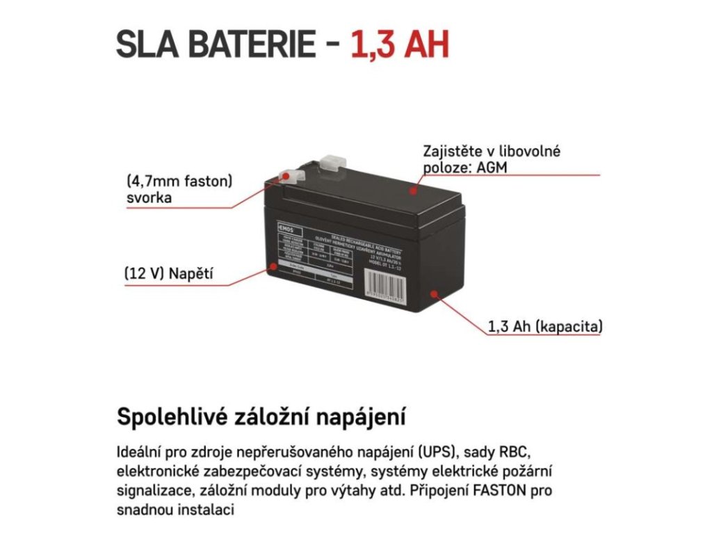 12V baterie (akumulátor) SLA 12V/1,3Ah