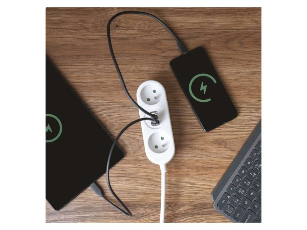 PRODLUŽKA 2M 1MM 2Z+2×USB A+1×USB C