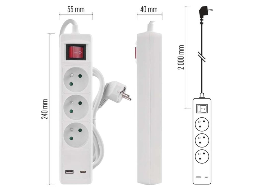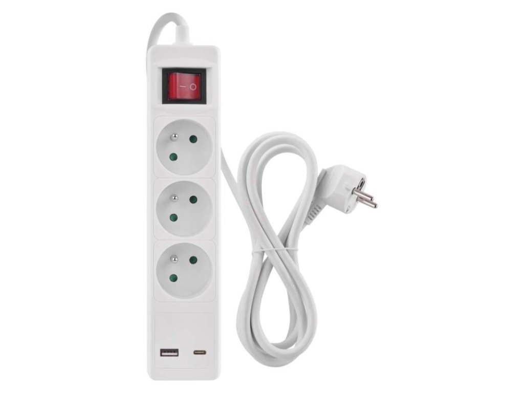 PRODLUŽKA 3Z 2M S VYP. 1,5MM +USB A+C