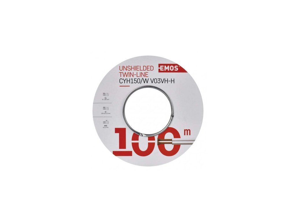 barva izolace vnitřních vodičů: není|barva pláště: bílá, bílá|dvojitá izolace: ne|materiál pláště: PVC|materiál vnitřního vodiče: měď (Cu)|materiál vodičů stínění: není|maximální provozní napětí: 50 V|počet drátků stínění: není|předpokládané použití: přenos nízkého napětí|prodejní obal: 100 m, cívka|průměr vnitřního vodiče: 133× 0,12 mm|průřez drátků stínění: není|průřez vodiče: 1,5 mm²|stínění: ne|typové označení: CYH150W|vnější izolace: 2× 3,5 mm|záruční doba: 2 roky|způsob balení - délka: 100 m