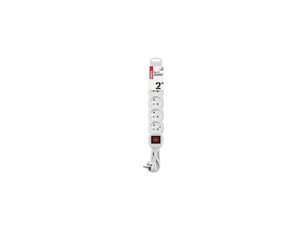 EMOS Prodlužovací kabel 2 m / 5 zásuvek / s vypínačem / bílý / PVC / 1 mm2 P1512