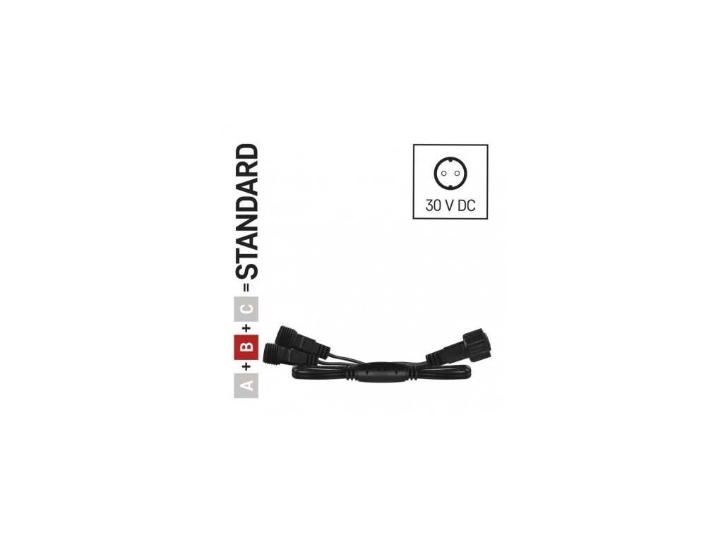 barva drátu: černá|časovač: ne|dálkový ovladač: ne|délka přívodu: 0,5 m|krytí: IP44|materiál: plast|max. počet propojení: 800 LED|použití: venkovní i vnitřní|příkon: neuvádí se|prodejní obal: 1 ks, závěs|produkt: rozbočovač|pro řadu: standard|typ napájení: neuvádí se|vstupní napětí: 30 V DC|výstupní napětí: neuvádí se|záruční doba: 2 roky|životnost: 5 000 hodin