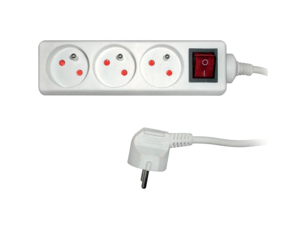Prodlužovací kabel bílý 3 ZÁS. 7m VYPÍNAČ