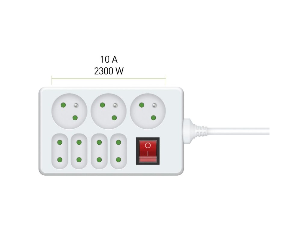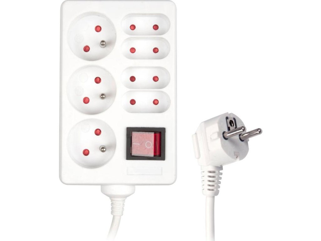 Prodlužovací kabel bílý 7 zásuvek 1,5m vypínač