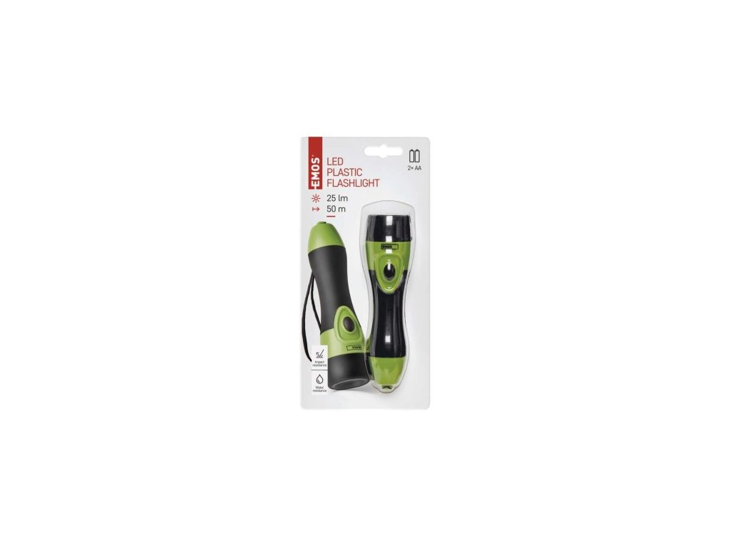 barva: černo-zelená|baterie součástí balení: ne|doba nabíjení: neuvádí se|doba svícení: 25 h|doba svícení detail: neuvádí se|dosvit: LED 100 % – 50 m|fokus: ne|hmotnost: 114 g|LED indikace nabíjení: neuvádí se|LED indikace stavu akumulátoru: neuvádí se|materiál: plast + guma|maximální dosvit: 50 m|maximální světelný tok: 25 lm|nabíjecí: ne|napájení: 2× AA|nárazuvzdornost: ano|počet režimů svícení: 1|příslušenství: neuvádí se|prodejní obal: 1 ks, papírový blistr|režimy svícení: LED 100 %|rozměr: 160 × 44 × 44 mm|speciální funkce: neuvádí se|světelný tok: LED 100 % – 25 lm|typ baterie: LR6 (1,5 V)|typ napájecího konektoru: neuvádí se|voděodolnost: ano (IP43)|vybavení: poutko|záruční doba: 2 roky|zdroj světla: LED|značka: EMOS