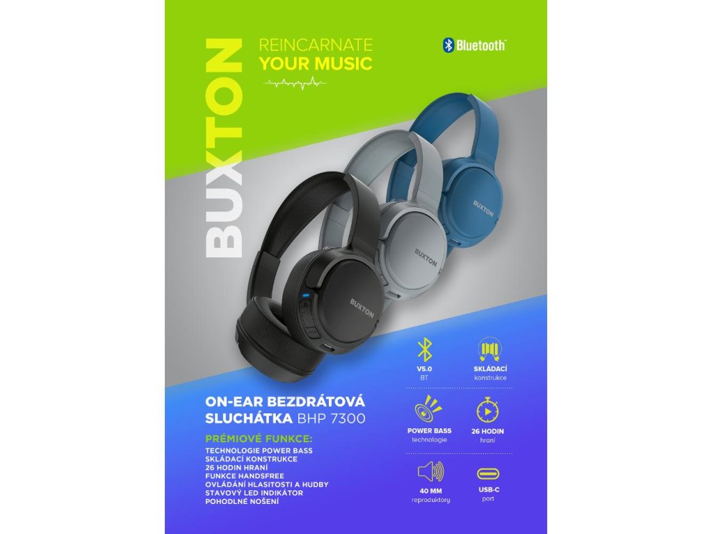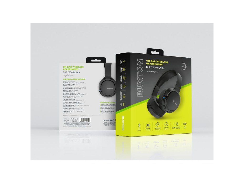 Sluchátka Buxton BHP 7300 snadno připojíte přes Bluetooth V5.3 BLE s dosahem patnácti metrů od zdroje. Skvělé je ovládání hlasitosti přímo na sluchátkách, integrovaný mikrofon, tři multifunkční ovládací tlačítka, funkce handsfree i LED dioda která vás kdykoli informuje o stavu baterie a aktuálním stavu sluchátek. Sluchátka, která nabijete přes USB-C port za necelé dvě hodiny, vydrží hrát při zvolené maximální hlasitosti celých 40 hodin a při poloviční hlasitosti dokonce až 55 hodin!