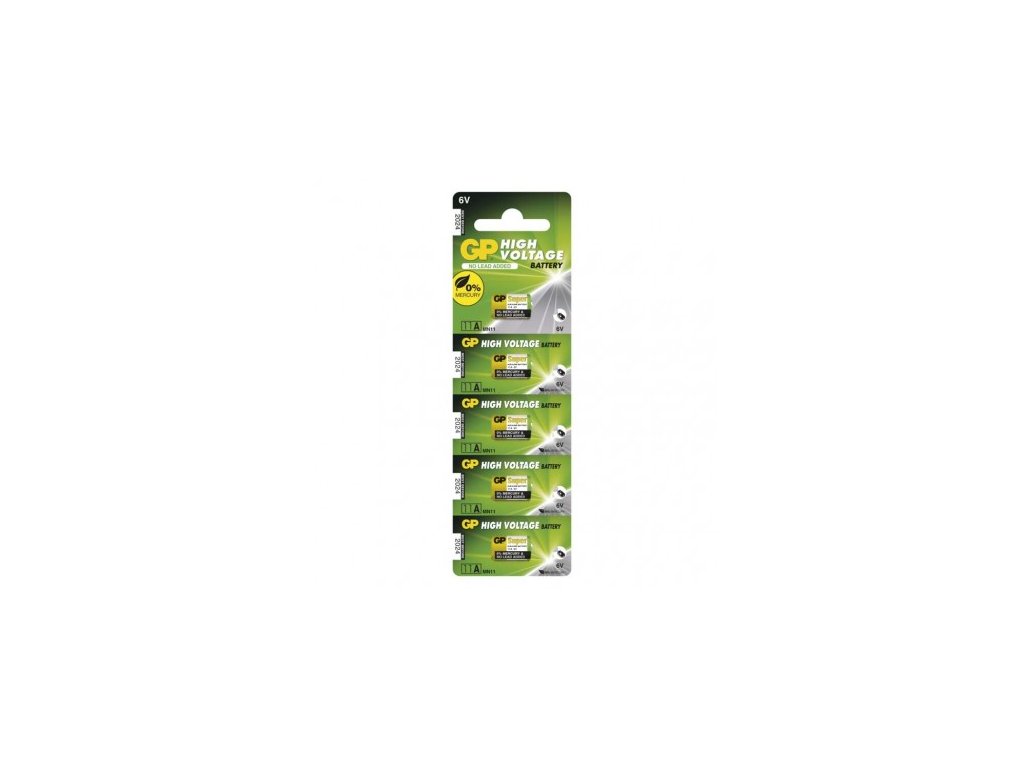 chemické složení: alkalické-speciální|hmotnost: 4,0 g|kapacita: 38 mAh (při zátěži 10 kOhm)|kategorie/řada: High Voltage|max. skladovatelnost: 3 roky|možnost nabíjení: ne|napětí: 6 V|počet nabíjecích cyklů: nenabíjecí|prodejní obal: 5 ks, blistr|provozní teplota: 0 °C až +45 °C|rozměr: 10,22 × 16,5 mm|typ: GP 11AF|velikost baterie: neuvádí se|značka: GP