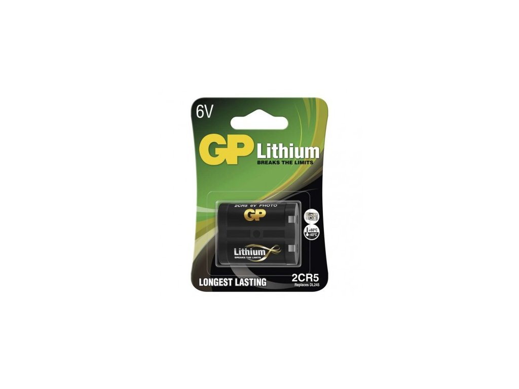 chemické složení: lithiové|hmotnost: 40 g|kapacita: 1 400 mAh|kategorie/řada: Lithium|max. skladovatelnost: 10 let|možnost nabíjení: ne|napětí: 6 V|počet nabíjecích cyklů: nenabíjecí|prodejní obal: 1 ks, blistr|provozní teplota: -40 °C až +60 °C|rozměr: 34 × 17 × 45 mm|typ: 2CR5 (EL2CR5BP, DL245)|velikost baterie: neuvádí se|značka: GP