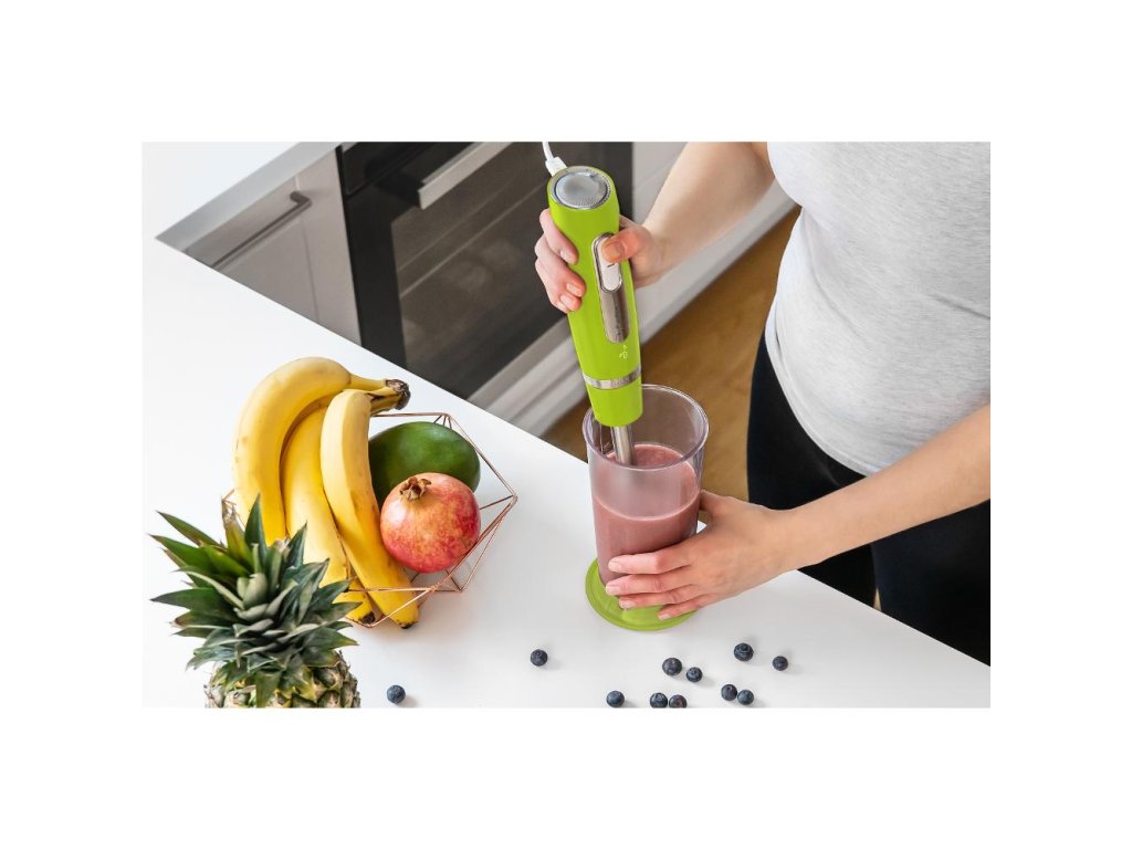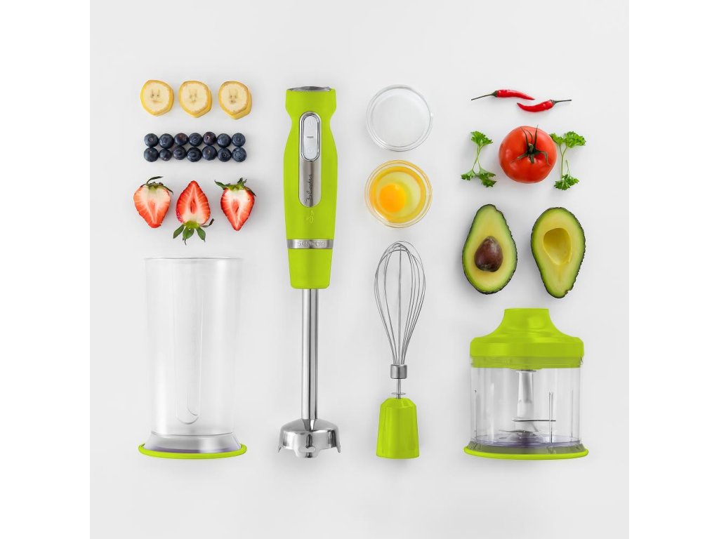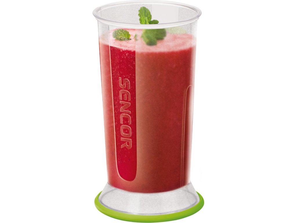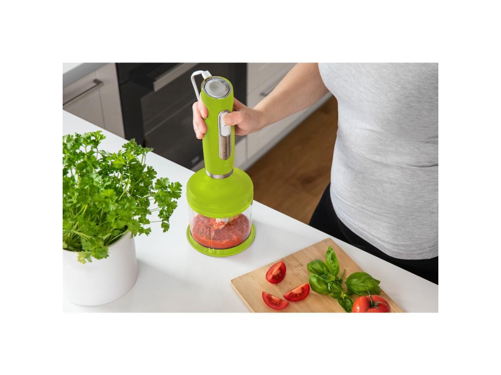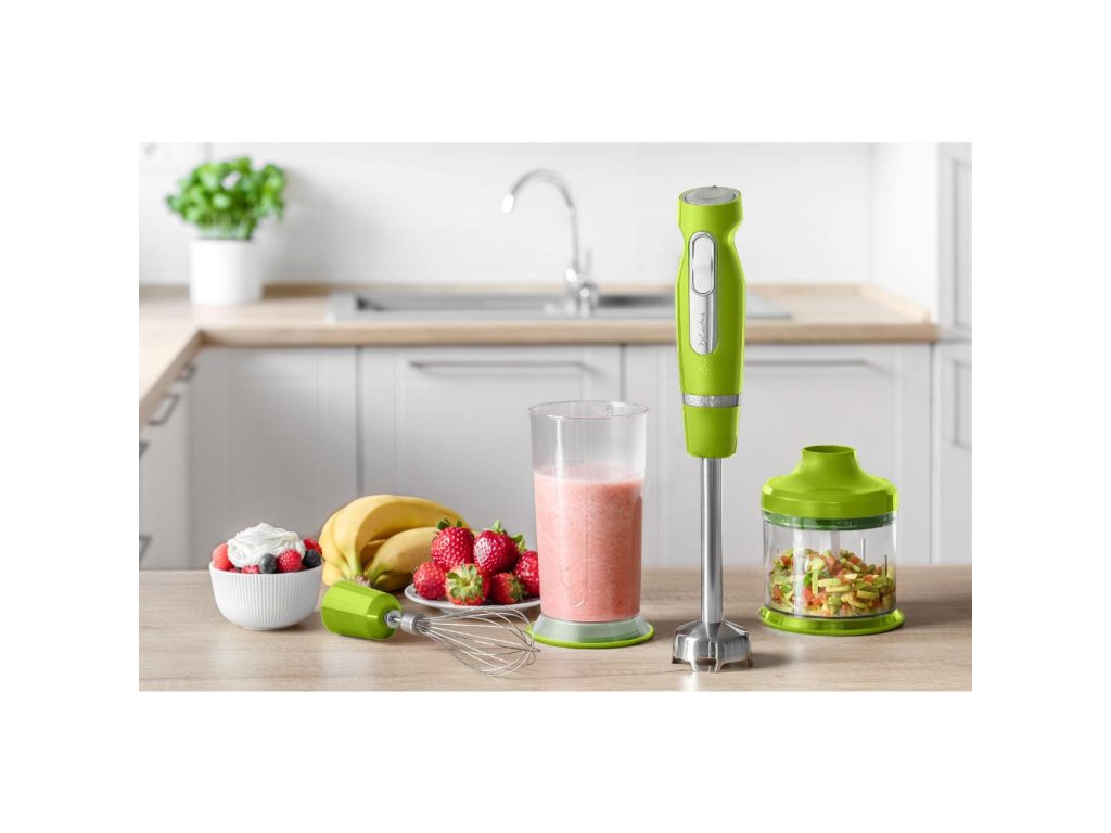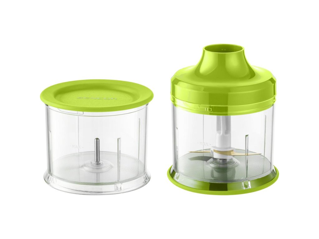Příslušenství: Nádoba o objemu 700 ml s víčkem, 500 ml sekáček, šlehací metla